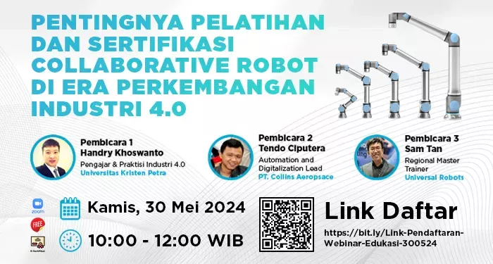 Kami mengundang anda untuk berpartisipasi dalam Online Workshop yang bertema Meningkatkan Kompetensi Siswa Menggunakan Universal Robots Collaborative Robot E-Learning.